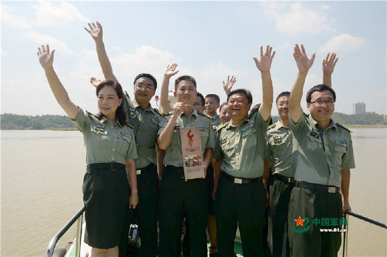 解放军报社记者代烽护送火种灯登船渡河,踏上采访长征路的征程。记者岱天荣摄影