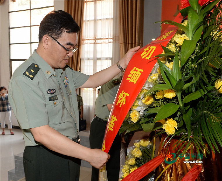 解放军报社社长李秀宝在于都烈士纪念馆为烈士敬献花圈。记者岱天荣摄影