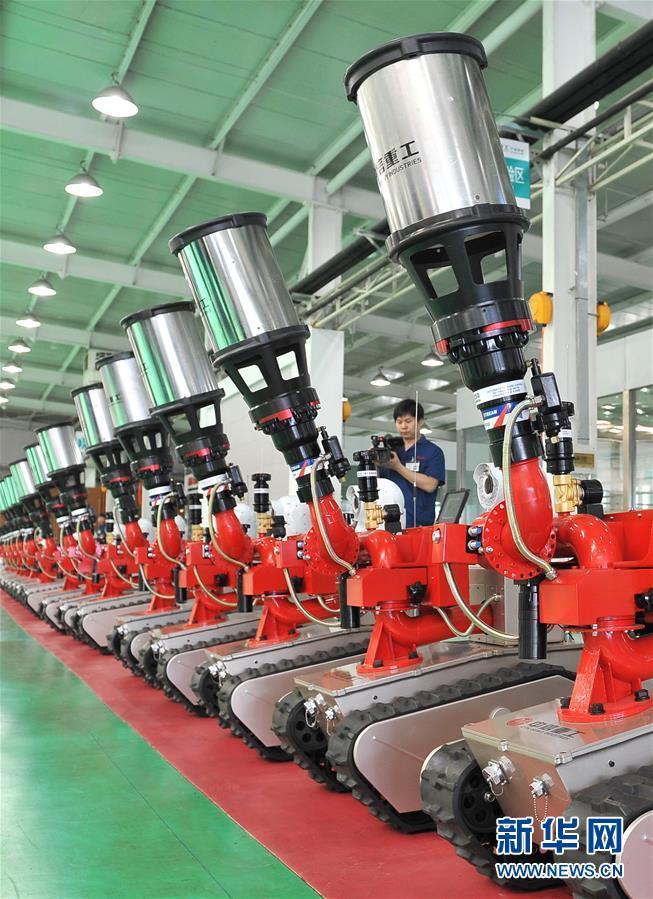 工人在唐山中信重工开诚智能装备公司调试消防机器人(6月2日摄)。 1976年7月28日,一场7.8级的大地震使有百年历史的工业城市唐山变为一片废墟,夺走了20多万人的生命。地震给唐山带来了毁灭性的灾难,唐山则在一片瓦砾上创造了奇迹。1986年,唐山恢复建设基本完成。1978年,新唐山大规模建设拉开序幕。唐山的经济建设、改革开放和各项社会事业都取得了令人瞩目的成绩。2015年,全市地区生产总值达到6100亿元,人均国民生产总值、财政收入均居河北省第一位。新华社记者牟宇摄
