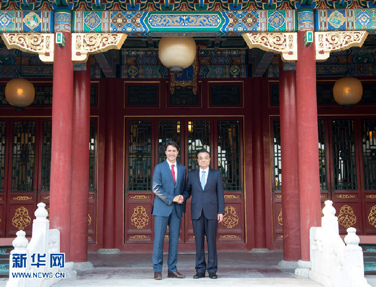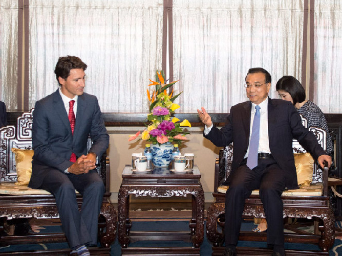 8月30日,国务院总理李克强在北京会见来华进行正式访问的加拿大总理特鲁多。 新华社记者王晔摄