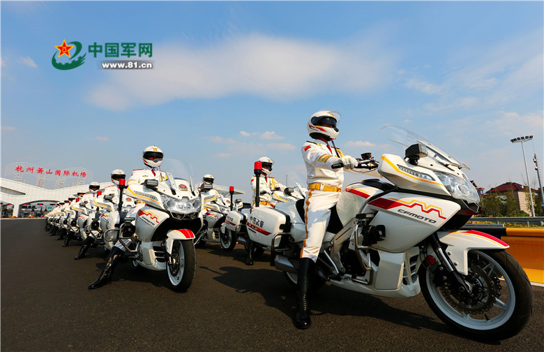 9月4日,国宾护卫队员驾驶着摩托车行驶在杭州街头。李光印 摄