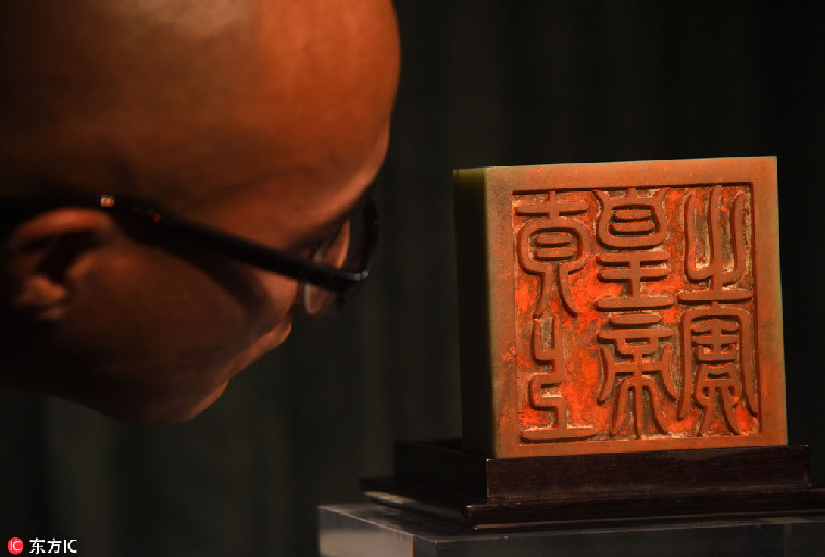 2016年9月8日,中国香港,知名拍卖行香港苏富比举行其中国艺术品秋季拍卖会传媒预展,重点展示、推介三款清乾隆御制,包括和田青玉交龙钮方玺“太上皇帝之宝”、“湘江秋碧”古琴、粉彩粉地包袱式盖罐一对,拍卖估价分别高达8000万至1.2亿、2500万至3000万、3000万至4000万港元。其中,“太上皇帝之宝”玉玺高11厘米、长宽各12.8厘米,体积仅次于北京故宫所藏同印文方玺,为民间及拍卖市场流传所见最大方玺。苏富比中国艺术品专场秋拍将于10月5日在香港举槌,合共呈现近300件拍品,总估价逾6.2亿港元。