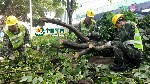 记者在现场看到,指挥员将部队化整为零,200名官兵沿筜湖沿岸和江头公园沿岸排开。4至6人为一个战斗小组,1个小组1台手持式自动伐木机,1辆自卸车保障2个小组,然后将3台装载机布置在树木较大、清理较难位置,极大提高了清理效率。在1个战斗小组中,1人负责切割,2至3人负责清理转运,1人负责安全警戒,目前清理任务正在紧张进行。
