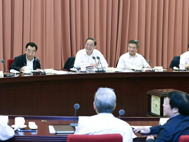 全国政协副主席罗富和、张庆黎、王正伟出席座谈会。