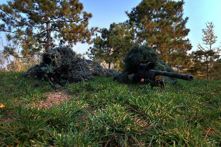 蓝剑突击队员在野外进行狙击训练(2014年10月27日摄)。新华社发(张岩摄)