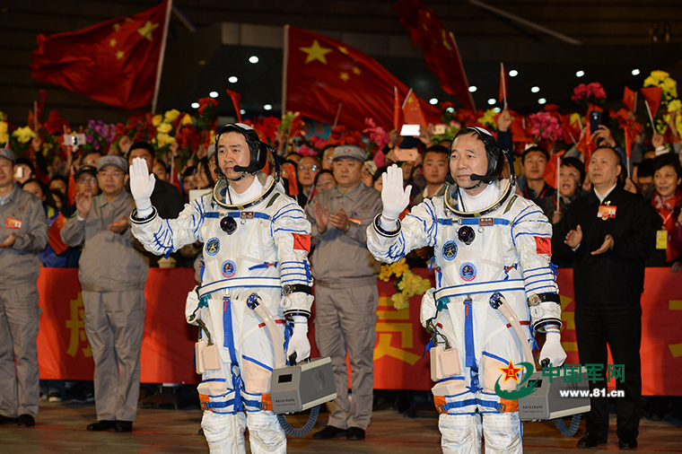 神舟十一号航天员景海鹏陈冬出征