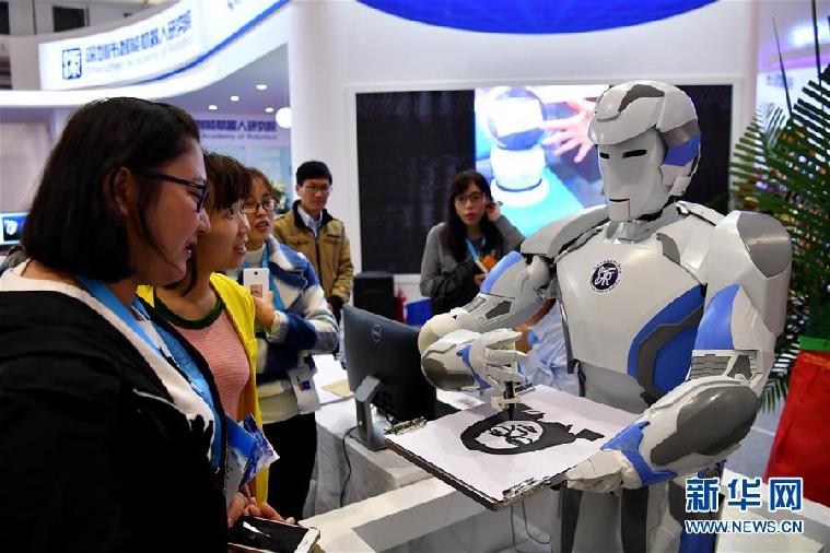 10月20日,一款智能识别机器人为一名参观者画像。当日,2016世界机器人大会在北京开幕。此次世界机器人大会以“共创共享共赢,开启智能时代”为主题,近150家全球知名机器人企业参会。新华社记者 李鑫 摄