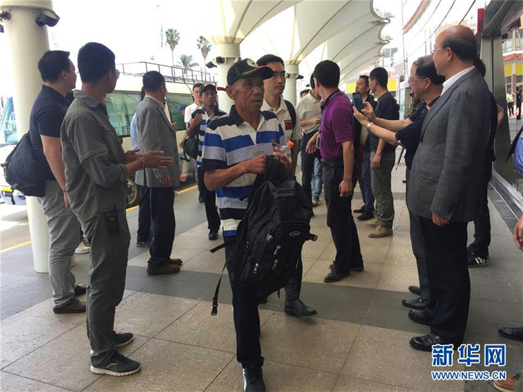 10月24日,获救船员(戴帽子者)抵达肯尼亚首都内罗毕的肯雅塔国际机场,准备搭乘航班回国。 9名遭索马里海盗劫持的中国船员在安全获救后于24日自肯尼亚首都内罗毕乘机启程回国,另有一人留在内罗毕接受治疗。 新华社记者孙瑞博摄