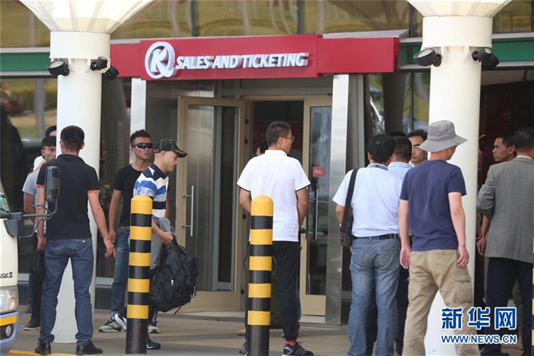 10月24日,获救船员(条纹上衣者)抵达肯尼亚首都内罗毕的肯雅塔国际机场,准备搭乘航班回国。 9名遭索马里海盗劫持的中国船员在安全获救后于24日自肯尼亚首都内罗毕乘机启程回国,另有一人留在内罗毕接受治疗。 新华社记者潘思危摄