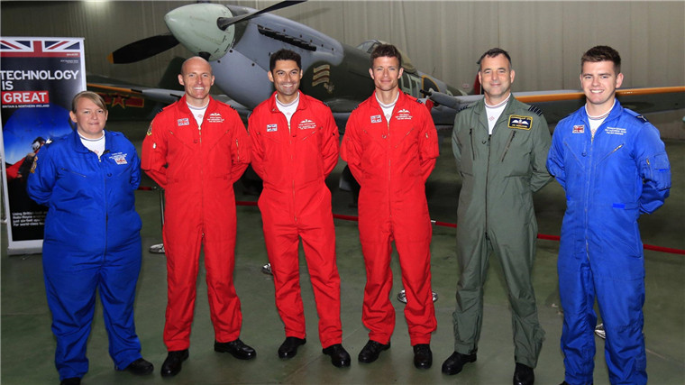10月25日,英国皇家空军红箭飞行表演队的部分成员在北京的中国航空博物馆参观时合影。当日,英国皇家空军红箭飞行表演队的部分成员在北京参观中国航空博物馆,并参加一系列交流活动。英国皇家空军红箭飞行表演队将在11月1日至6日举行的珠海航展上亮相,这将是这支享誉世界的飞行队首次在华进行飞行表演。新华社记者 张玉薇 摄