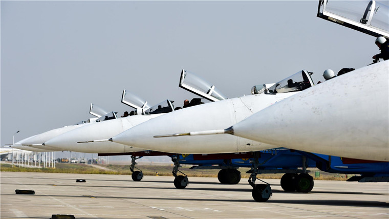 10月25日,苏-27表演机停靠在呼和浩特白塔国际机场。当日,俄罗斯“勇士”特技飞行表演队5架苏-27表演机、1架伊尔-76保障机降落在内蒙古呼和浩特白塔国际机场。他们将在呼和浩特停留补给后飞往广东珠海,参加11月1日至6日举行的第十一届中国国际航空航天博览会。新华社记者 连振 摄