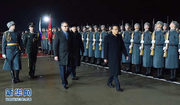 这是离开莫斯科时,俄罗斯政府高级官员到机场送行。俄方为李克强举行了隆重的欢送仪式。李克强检阅了仪仗队分列式。 新华社记者 张铎 摄