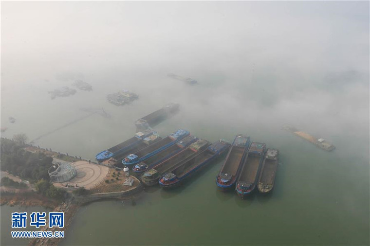 11月14日,淮河江苏淮安段被大雾笼罩。
