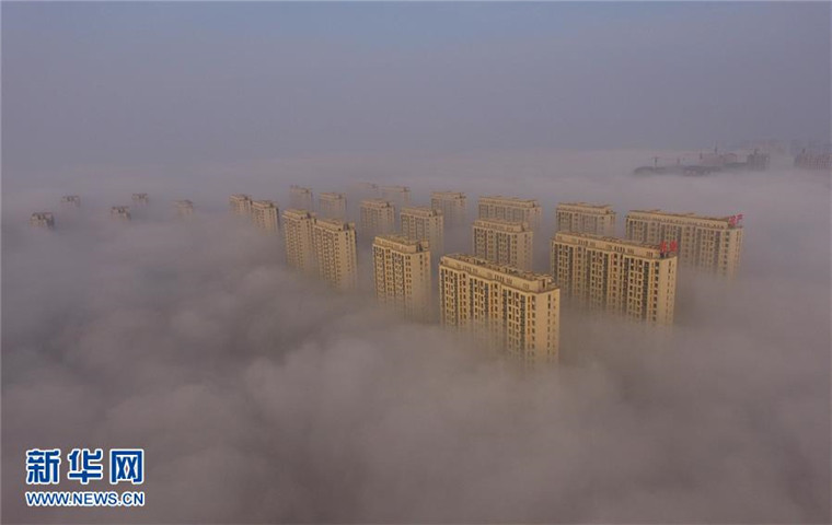 11月14日,山东省日照市市区被大雾笼罩,新华社发(刘明照 摄)