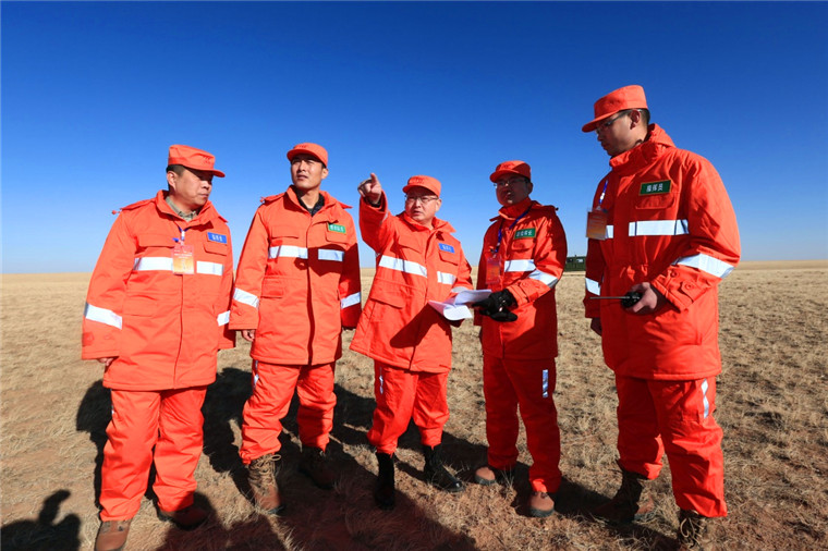 11月16日,西安卫星测控中心主着陆场区指挥部指挥长李权(中)带领人员研究方案。