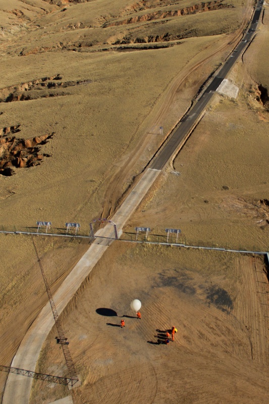 11月16日,神舟十一号载人飞船返回任务气象保障人员在草原上放飞气象探空气球。