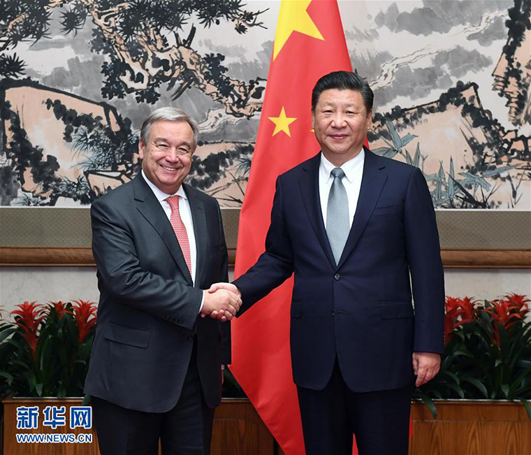 11月28日,国家主席习近平在北京钓鱼台国宾馆会见候任联合国秘书长古特雷斯。 新华社记者饶爱民摄