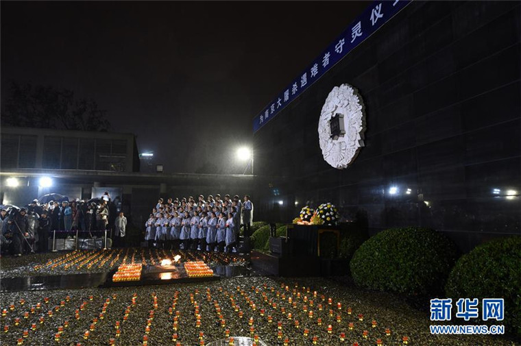 当日是第三个南京大屠杀死难者国家公祭日。入夜,各界人士在侵华日军南京大屠杀遇难同胞纪念馆祭场内手托红烛、低头哀思,为南京大屠杀死难者举行守灵暨烛光祭活动。