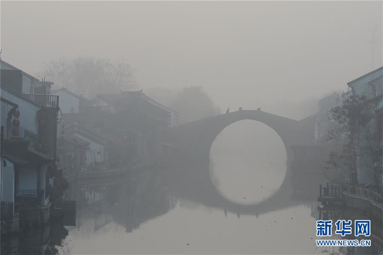 2017年1月3日早晨,江苏无锡城区被大雾笼罩。