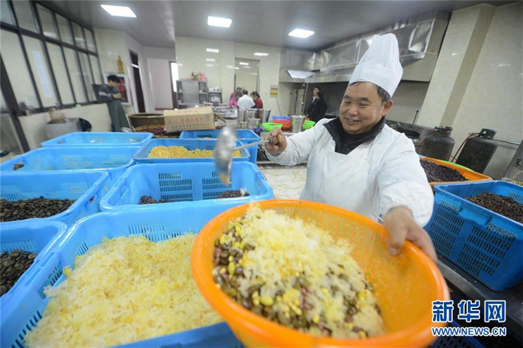 1月4日,江苏扬州大明寺的工作人员在配制腊八粥的食材。当日,扬州大明寺开始准备食材,熬制腊八粥,并将于1月5日“腊八节”向市民及游客免费发放。 新华社发(孟德龙 摄)