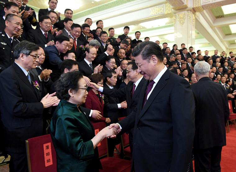 1月9日,2016年度国家科学技术奖励大会在北京人民大会堂隆重举行。党和国家领导人习近平、李克强、刘云山、张高丽等出席大会并为获奖代表颁发奖励证书。会前,习近平等党和国家领导人会见获奖代表。新华社记者 李学仁 摄
