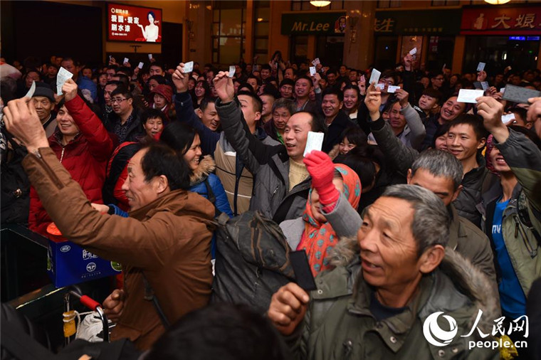 1月13日,在候车大厅,等待检票的旅客。(人民网记者 翁奇羽 摄)