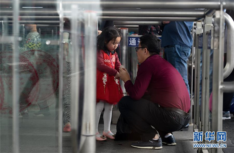 2月2日,在深圳北站,一名父亲蹲在进站口与女儿告别。春节长假即将结束,深圳迎来节后返程高峰。经过春节的短暂团聚,前来深圳探望亲友的旅客踏上归途,上演一幕幕告别的场景。 新华社记者毛思倩摄