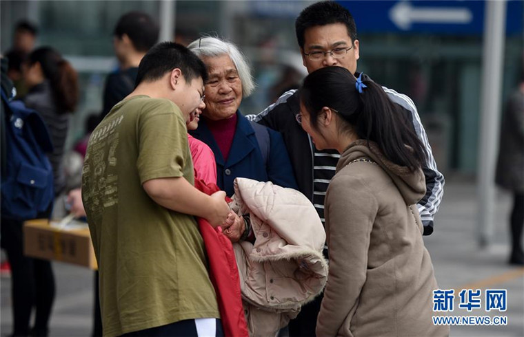 2月2日,在深圳北站,家人围在即将返回韶关老家的祖母身边。春节长假即将结束,深圳迎来节后返程高峰。经过春节的短暂团聚,前来深圳探望亲友的旅客踏上归途,上演一幕幕告别的场景。 新华社记者毛思倩摄