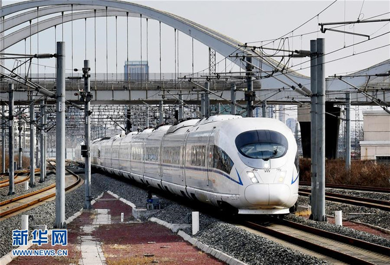 2月6日,一列开往上海虹桥的高铁列车驶入天津站。据中国铁路总公司统计,截至2月5日,2017年全国铁路春运累计发送旅客2.08亿人次,运输安全平稳有序。 新华社发(杨宝森 摄)