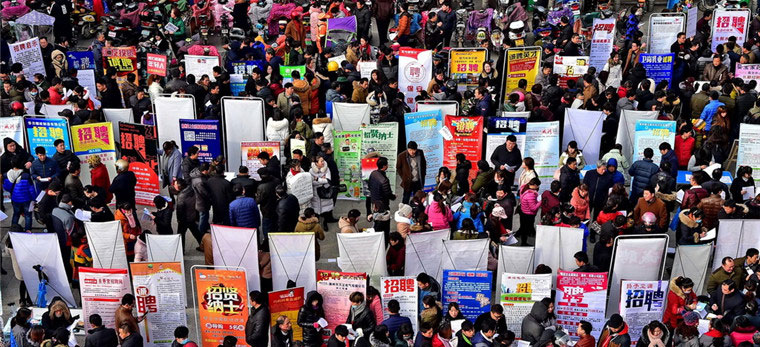 2月7日,在武汉国际会展中心华中人才市场新春首场大型人才招聘会上,求职者在寻找工作岗位。春节假期过后,各地陆续迎来求职招聘高峰。新华社发(柯皓 摄)