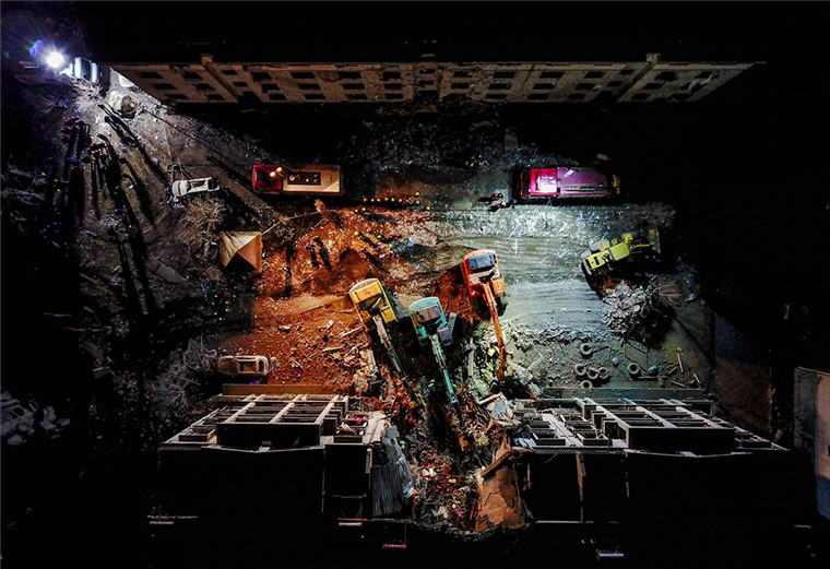 这是航拍的包头市北只图村向阳小区爆炸事故救援现场(3月25日摄)。