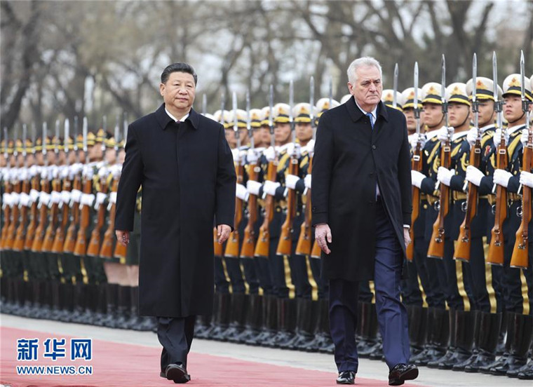 3月30日,国家主席习近平在北京人民大会堂同塞尔维亚总统尼科利奇举行会谈。这是会谈前,习近平在人民大会堂东门外广场为尼科利奇举行欢迎仪式。新华社记者 谢环驰摄