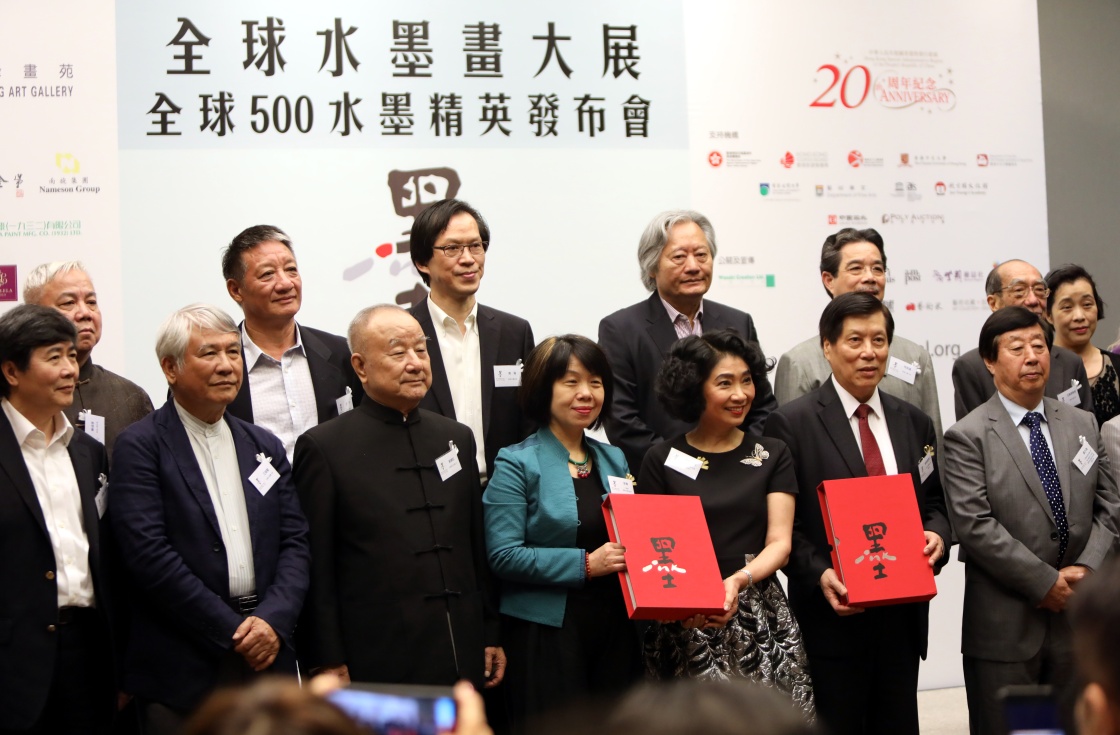 5月11日,嘉宾和评审团成员在“全球水墨画大展”新闻发布会上合影。新华社记者 李鹏 摄