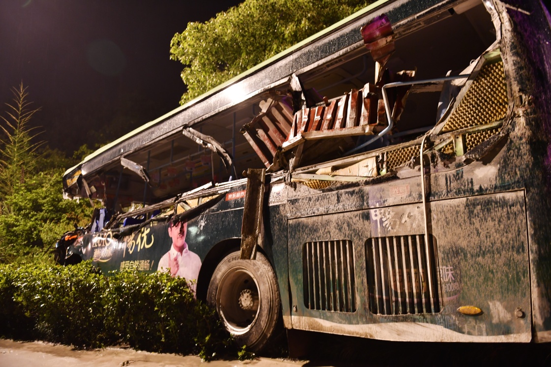 这是事故现场的受损公交车(5月15日摄)。 新华社记者胡晨欢摄