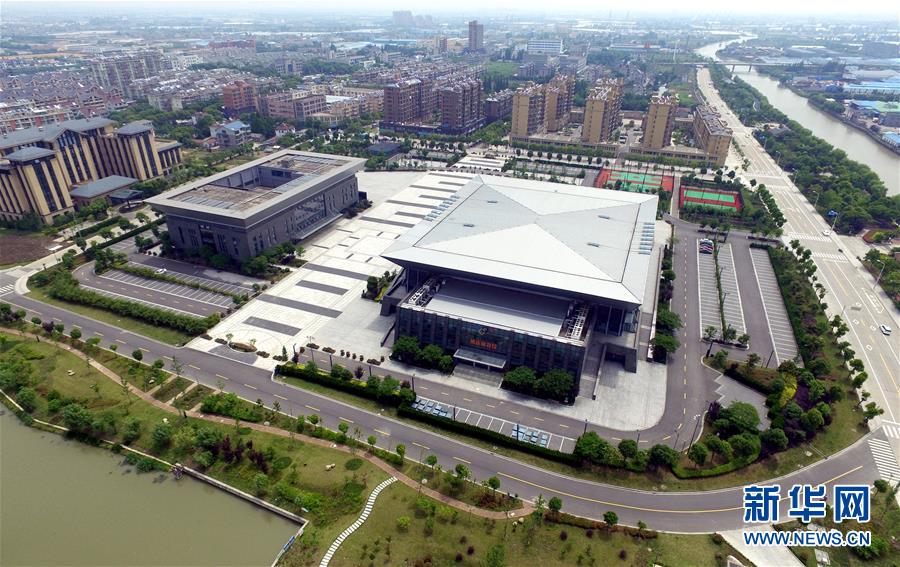 5月25日航拍的浙江省嘉善县姚庄镇的体育馆。嘉善县位于浙江省嘉兴市东北部,江浙沪两省一市交汇处,地处长三角城市群核心区域,全县面积500多平方公里,是全国首个县域科学发展示范点。2016年,嘉善实现地区生产总值457亿元,位居全国县域前列。目前,嘉善已经全面消除人均年收入4600元以下贫困户,2016年城乡居民人均可支配收入分别为50021元和29514元。新华社记者 王定昶 摄