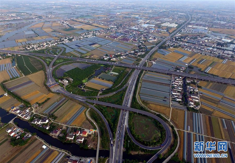 6月2日航拍的申嘉湖高速嘉善段,发达的高速公路、高铁网络,让嘉善能便利地接轨上海。嘉善县位于浙江省嘉兴市东北部,江浙沪两省一市交汇处,地处长三角城市群核心区域,全县面积500多平方公里,是全国首个县域科学发展示范点。2016年,嘉善实现地区生产总值457亿元,位居全国县域前列。目前,嘉善已经全面消除人均年收入4600元以下贫困户,2016年城乡居民人均可支配收入分别为50021元和29514元。新华社记者 王定昶 摄