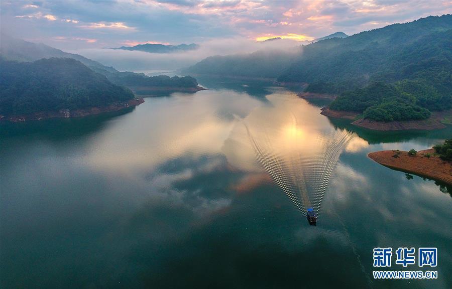 7月5日清晨,一艘小船行驶在霍山县东淠河上。