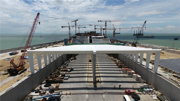 高空俯瞰,两座面积达20万平方米的东、西人工岛实现了桥梁和隧道的流畅转换。与传统填海造岛方案不同,港珠澳大桥选择了“钢圆筒围岛”的快速成岛方案。