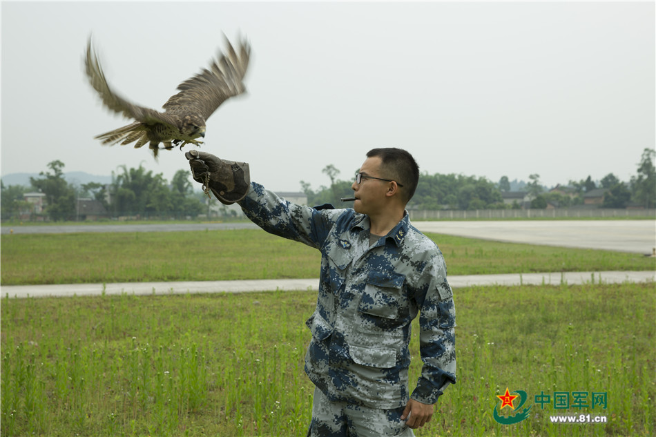 飞行间隙,曹宇还要负责对连队喂养的两只鹰隼进行训练。