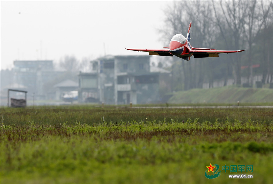 曹宇操纵航模在机场草坪上进行超低空飞行驱鸟。