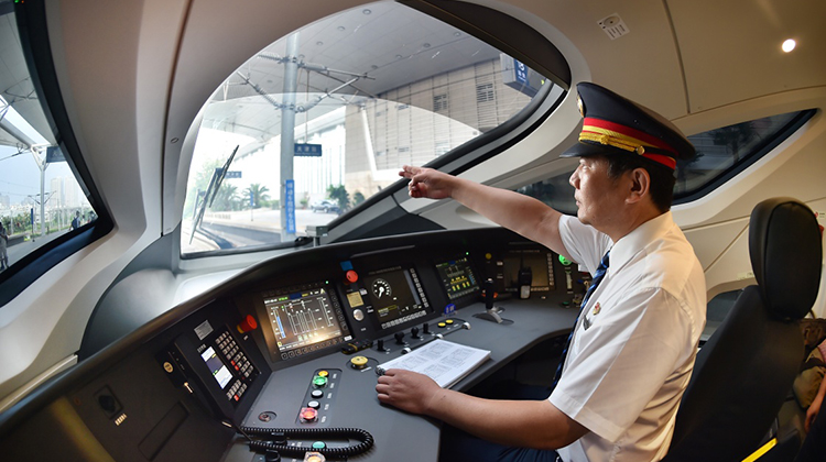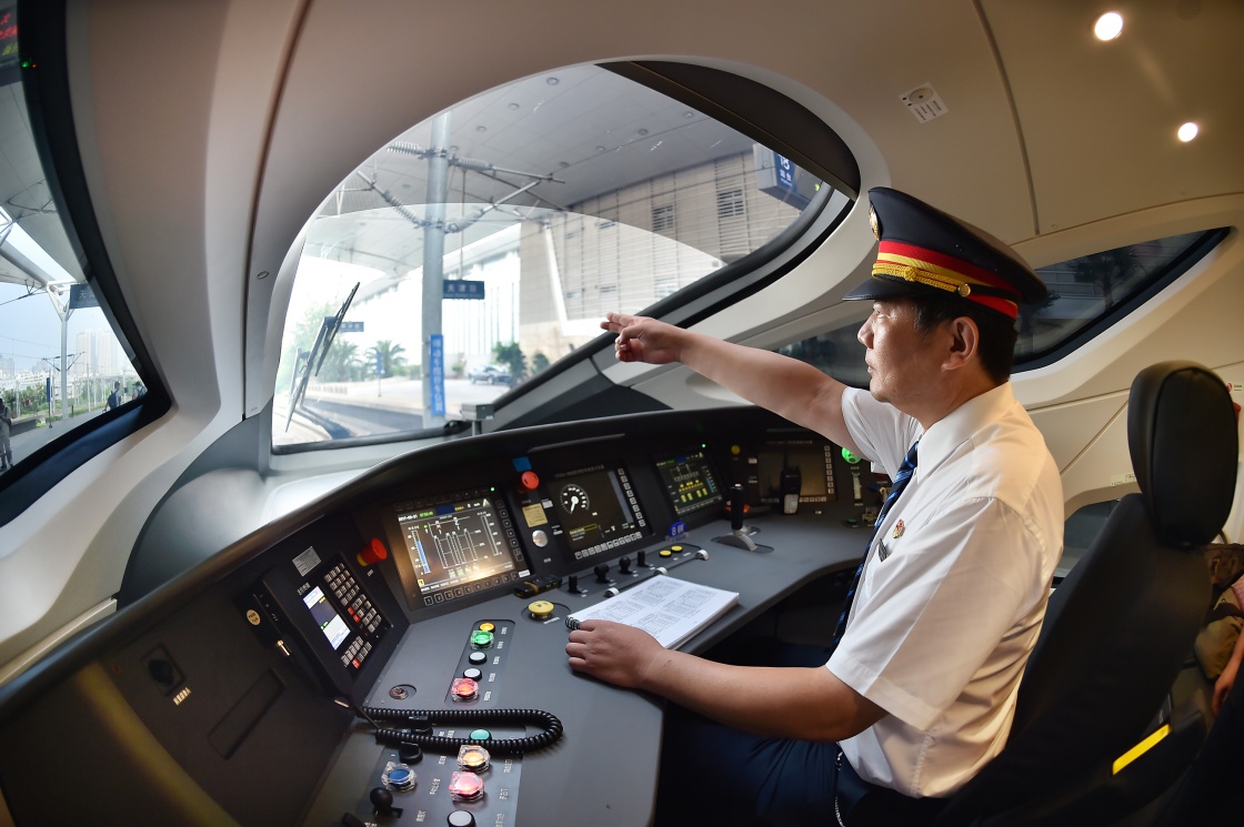 8月21日,从天津开往北京南的“复兴号”中国标准动车组的值乘人员准备发车。新华社发(杨宝森 摄)