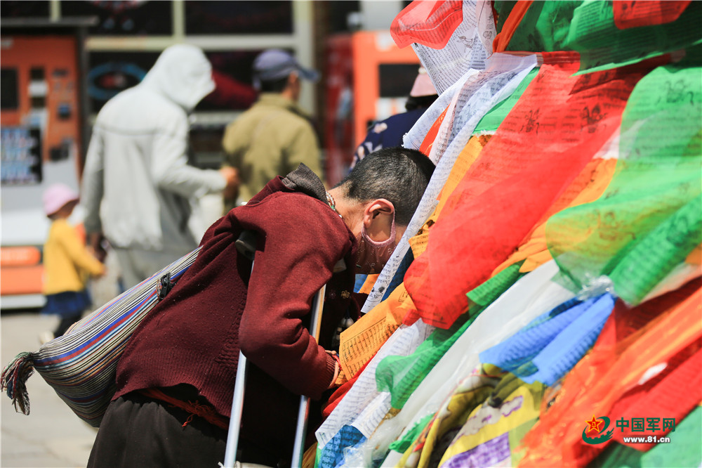 大昭寺广场前的祈福经幡。