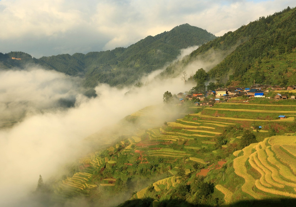 这是9月10日在贵州榕江县计划乡加宜村拍摄的梯田风光。新华社发 杨成利 摄