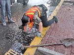 随着机械发展,哈尔滨一些较大的井口开始采用机器作业。但不少老井和老管道,只能靠人挖。有时候人下去连腰都直不起来,只能蹲着、跪着、甚至趴着,上来一身脏,还经常被铁丝、墙面剐伤。