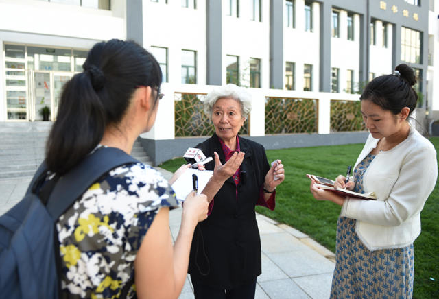图为陈秋影老师接受记者采访。