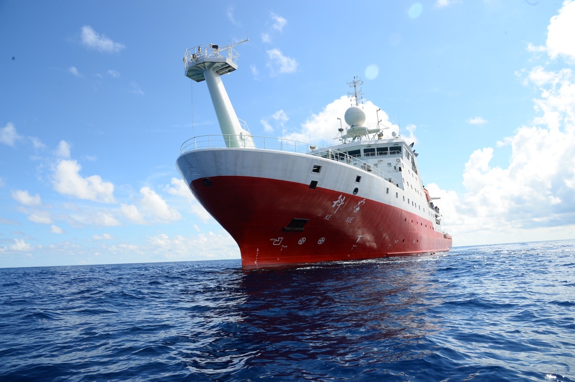 “科学”号在南海执行科考任务(7月27日摄)。新华社记者 张旭东 摄