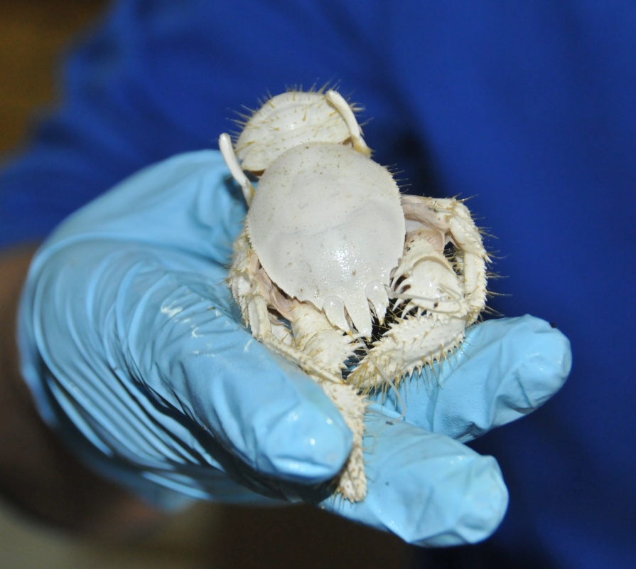 这是“蛟龙”号在南海一冷泉区采集到的毛瓷蟹(2013年7月9日摄)。新华社记者 张旭东 摄