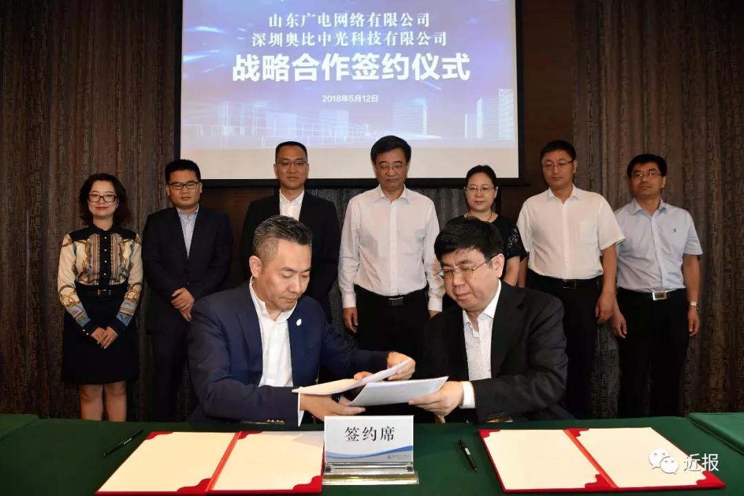深圳奥比中光科技有限公司首席运营官刘轩铭先生和山东广电网络有限公司总经理郝克远先生签约