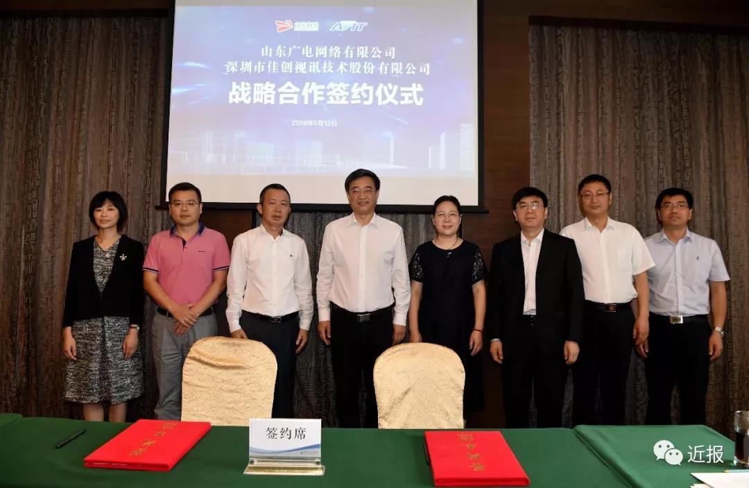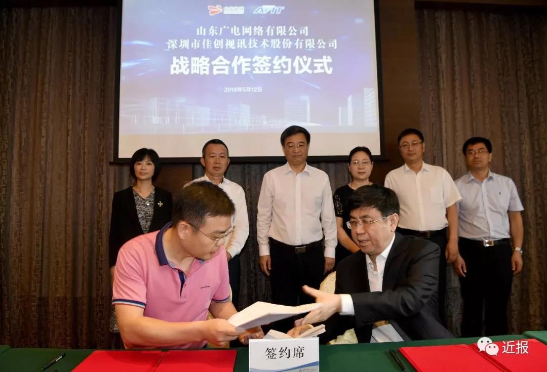 深圳市佳创视讯技术股份有限公司副总经理代昆先生和山东广电网络有限公司总经理郝克远先生签约。