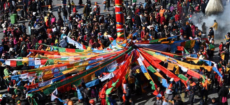 拉萨大昭寺换经幡迎藏历新年2017-02-09 09:40